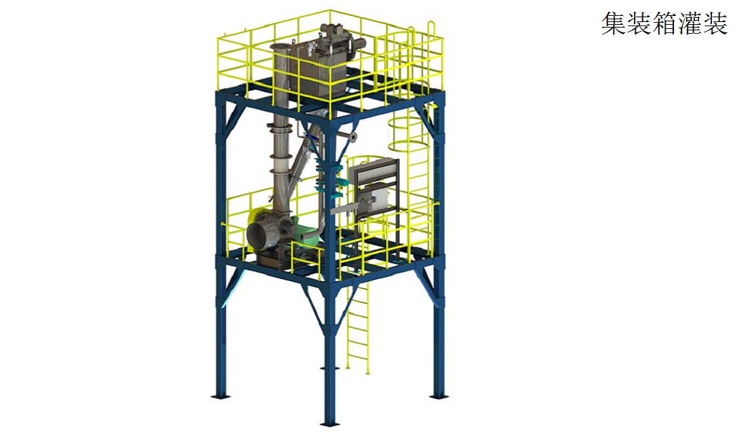 ? 集裝箱灌裝系統(tǒng)能力:120噸/小時(shí),灌裝形式:重力或旋轉(zhuǎn)式